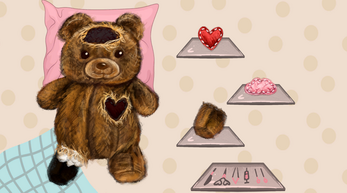 Our game, Teddybear Surgery, is a prototype that demonstrates a click-and-drag mechanic. It has a cute and colorful aesthetic and is suitable for all ages, especially children who love playing pretend with their plushies. In the game, players can perform surgery on a teddy bear by clicking and holding to drag different parts to where they belong. We have added satisfying sound effects and cheerful background music for a fun and enjoyable playing experience.